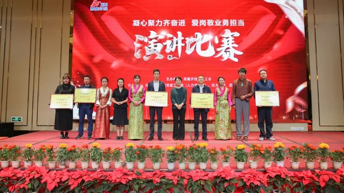 值此中國(guó)共產(chǎn)黨成立102周年和集團(tuán)公司成立十周年之際,為扎實(shí)推進(jìn)學(xué)習(xí)貫徹習(xí)近平新時(shí)代中國(guó)特色社會(huì)主義思想主題教育走深走實(shí),7月13日,由西藏開(kāi)發(fā)投資集團(tuán)有限公司工會(huì)主辦,黨建工作部(人力資源部)、機(jī)關(guān)黨委、團(tuán)委、婦委會(huì)聯(lián)合承辦的“凝心聚力齊奮進(jìn) 愛(ài)崗敬業(yè)勇?lián)?dāng)”主題演講比賽在拉薩邦錦花園酒店成功舉辦。區(qū)黨委宣傳部干部處處長(zhǎng)、一級(jí)調(diào)研員楊啟宏,區(qū)政府國(guó)資委機(jī)關(guān)黨委專職副書(shū)記卓瑪,區(qū)總工會(huì)宣教部四級(jí)調(diào)研員王政全等領(lǐng)導(dǎo),集團(tuán)公司黨委副書(shū)記、副董事長(zhǎng)、總經(jīng)理劉剛,集團(tuán)公司黨委委員、董事、總會(huì)計(jì)師陳焱罡,集團(tuán)公司黨委委員、區(qū)紀(jì)委監(jiān)委駐集團(tuán)公司紀(jì)檢監(jiān)察組組長(zhǎng)羅布次仁,集團(tuán)公司黨委委員、副總經(jīng)理、工會(huì)主席、機(jī)關(guān)黨委書(shū)記溫勇出席活動(dòng)并為獲獎(jiǎng)選手頒獎(jiǎng)。