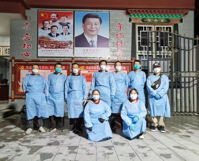 疫情就是命令。經(jīng)集團公司黨委決策,委派副總經(jīng)理尼瑪帶領(lǐng)志愿服務隊以時不我待的緊迫感和高度的責任感,火速趕往城關(guān)區(qū)嘎瑪貢桑街道俄杰塘社區(qū),展開他們的“下沉”抗疫行動。