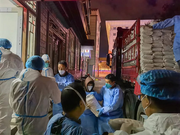 (為社區(qū)居民配送物資)