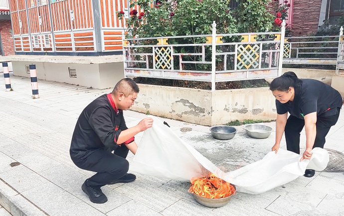(廚房滅火毯使用實(shí)操 李瑞峰攝)