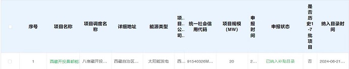 6月21日,國家電網(wǎng)公布2024年第六批列入可再生能源發(fā)電補貼項目名單,其中西藏開投八宿光伏電站發(fā)電項目成功納入國家光伏電價補貼目錄。