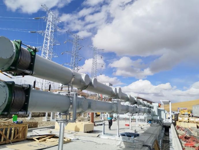 西藏開投色尼區(qū)達(dá)嘎普獨(dú)立構(gòu)網(wǎng)型儲(chǔ)能電站GIS安裝。(圖由中國(guó)電建集團(tuán)華東院提供)