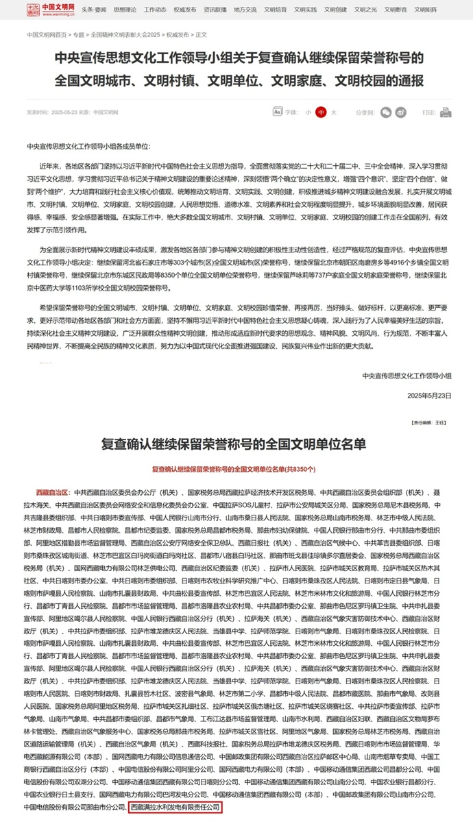 延續(xù)17年!滿拉水電公司再獲“全國文明單位”榮譽(yù)稱號
