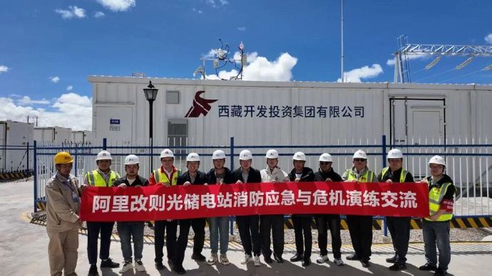 近日,西藏開投阿里清潔能源公司在集團(tuán)專家指導(dǎo)下,聯(lián)合改則縣應(yīng)急管理局、華為數(shù)字能源公司,在改則光儲(chǔ)電站開展了電化學(xué)儲(chǔ)能電池倉事故應(yīng)急演練。