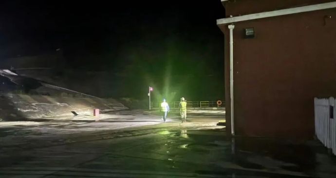 暴雨后現(xiàn)場工作人員做巡視檢查。