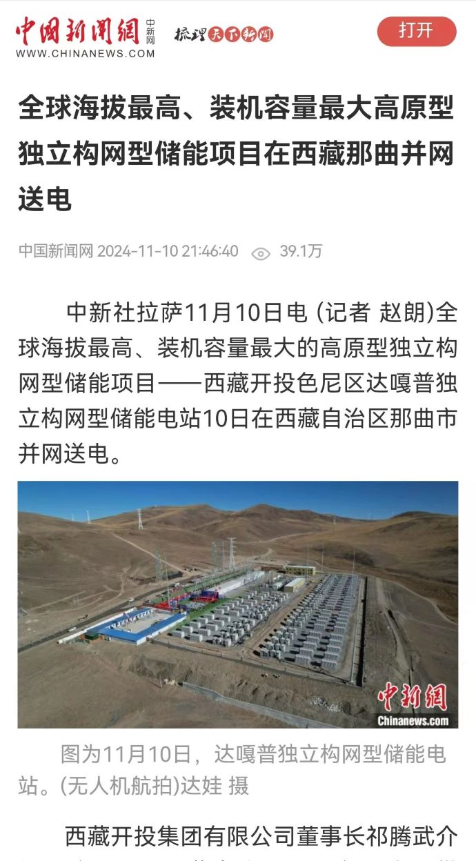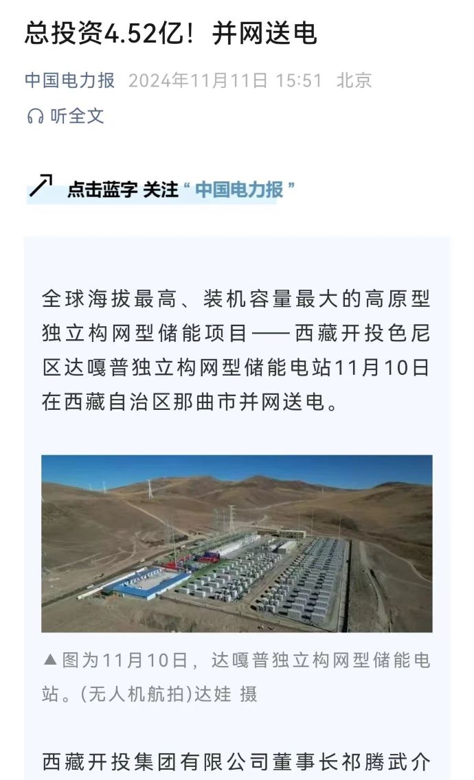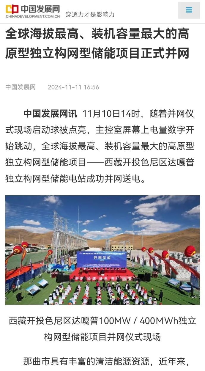 實力刷屏!各級媒體聚焦報道西藏開投色尼區(qū)獨立構網(wǎng)型儲能項目