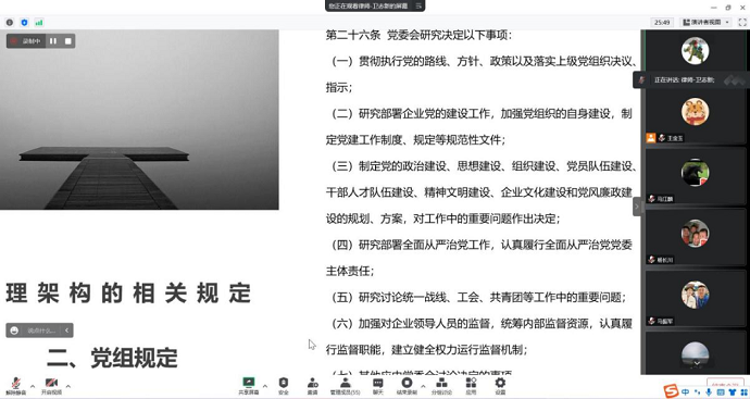 培訓圍繞集團公司章程規(guī)定、部門職責、三重一大規(guī)定三個方面作了系統(tǒng)講解,著重從合法、合規(guī)性方面進行了分析。此次培訓,有效促進了制度建設(shè)工作的法治化和規(guī)范化。下一步,集團公司將結(jié)合上級要求,持續(xù)加強制度管理體系的建設(shè),優(yōu)化管理流程,筑牢集團公司高質(zhì)量發(fā)展基石。