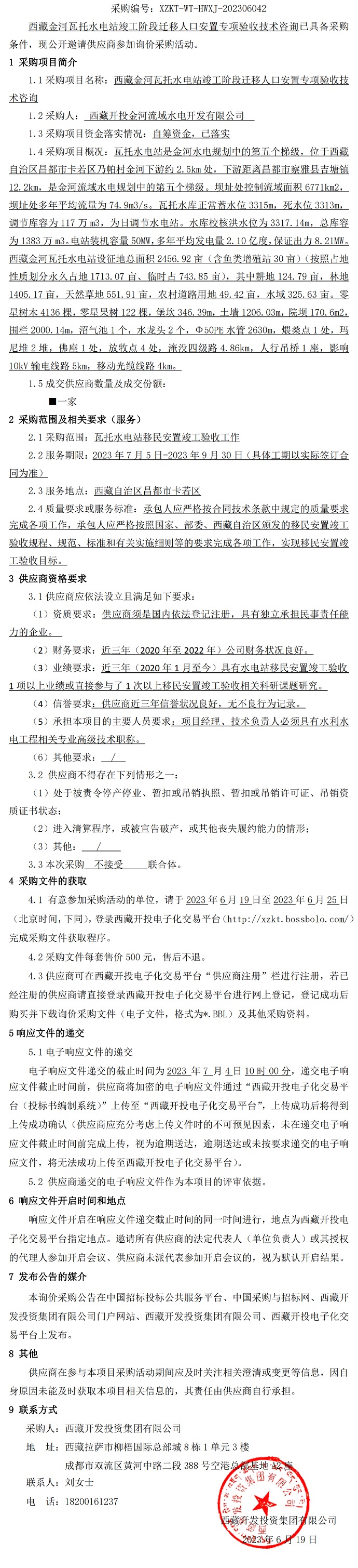 西藏金河瓦托水電站竣工階段遷移人口安置專項驗收技術(shù)咨詢詢價采購公告