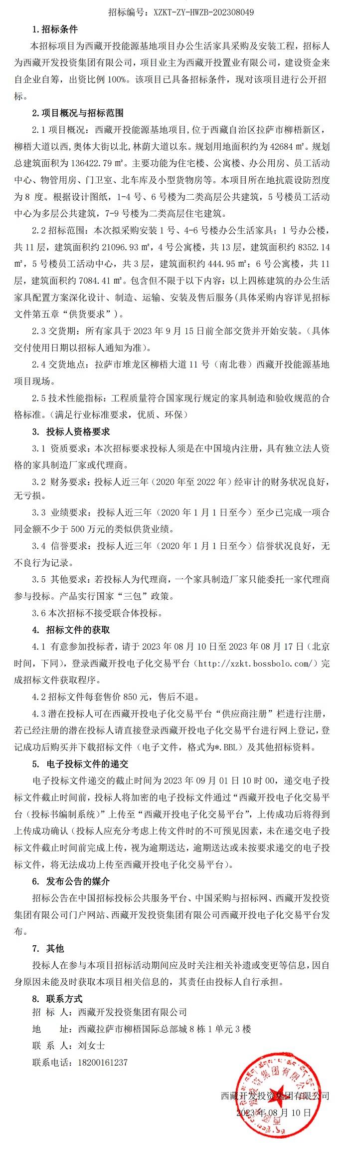 西藏開投能源基地項(xiàng)目辦公生活家具采購及安裝工程