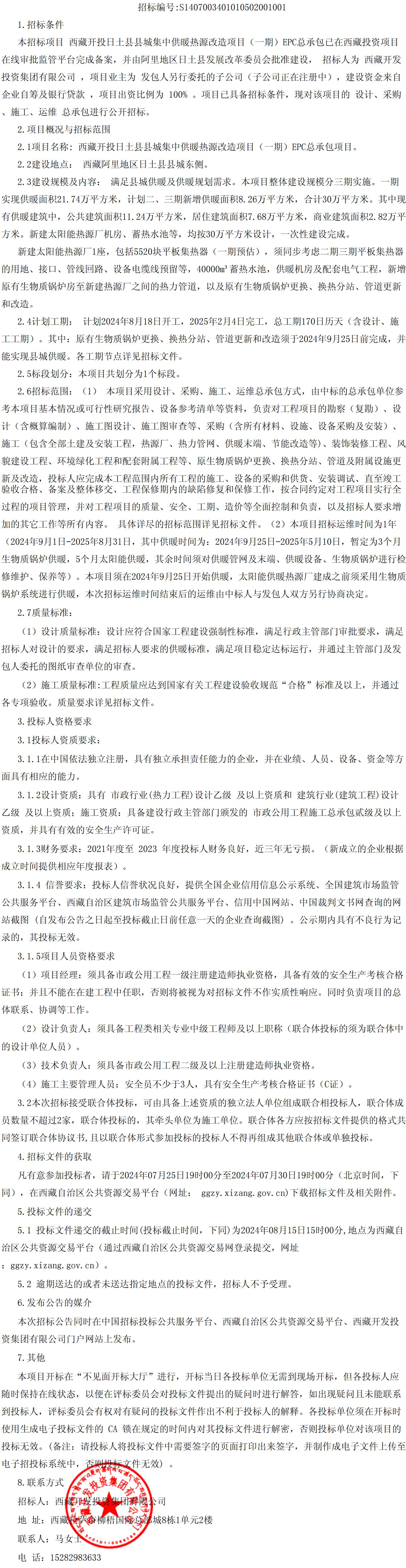 西藏開投日土縣縣城集中供暖熱源改造項(xiàng)目(一期)EPC總承包招標(biāo)項(xiàng)目招標(biāo)公告