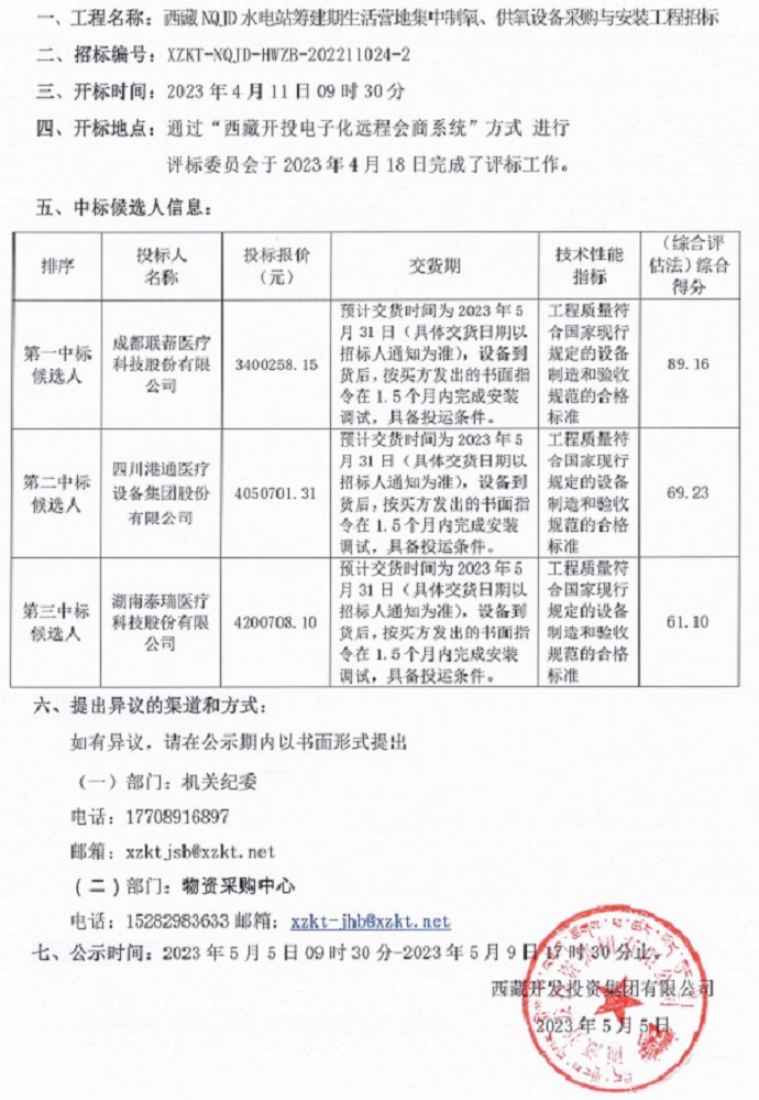中標(biāo)候選人公示